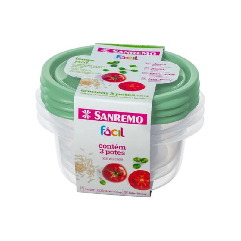 Conjunto de 3 Potes Plástico 620ml Sortido Sanremo
