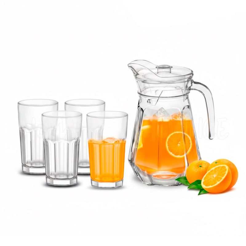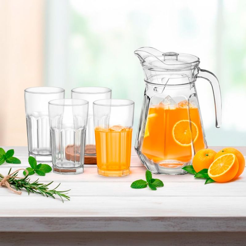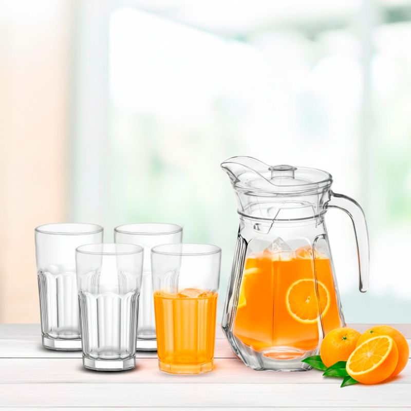 Conjunto de Jarra de Vidro 1,3L com Tampa e 4 Copos 200ml Classic Rio Home