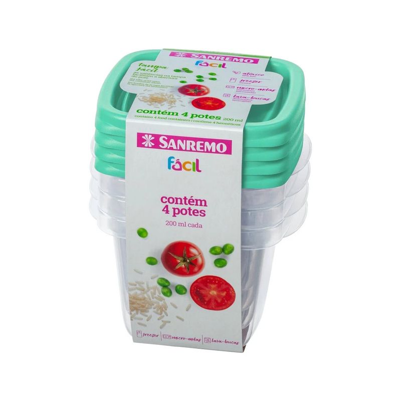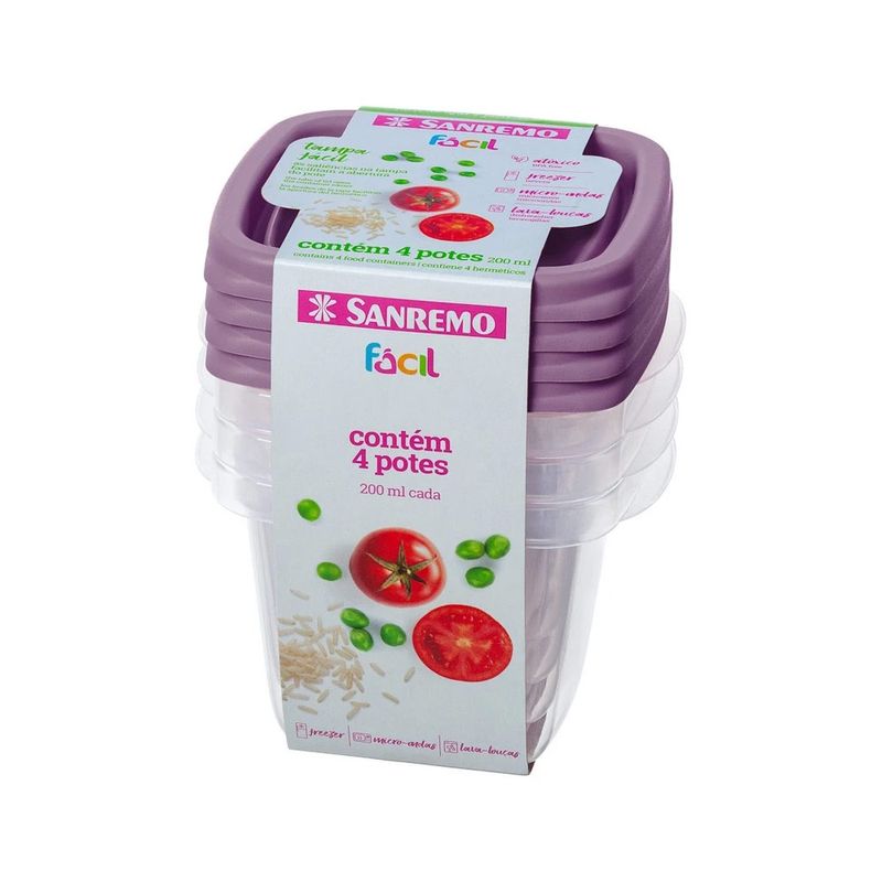 Conjuntos de Potes Plásticos 200ml 4 Peças Sortido Sanremo