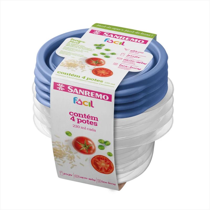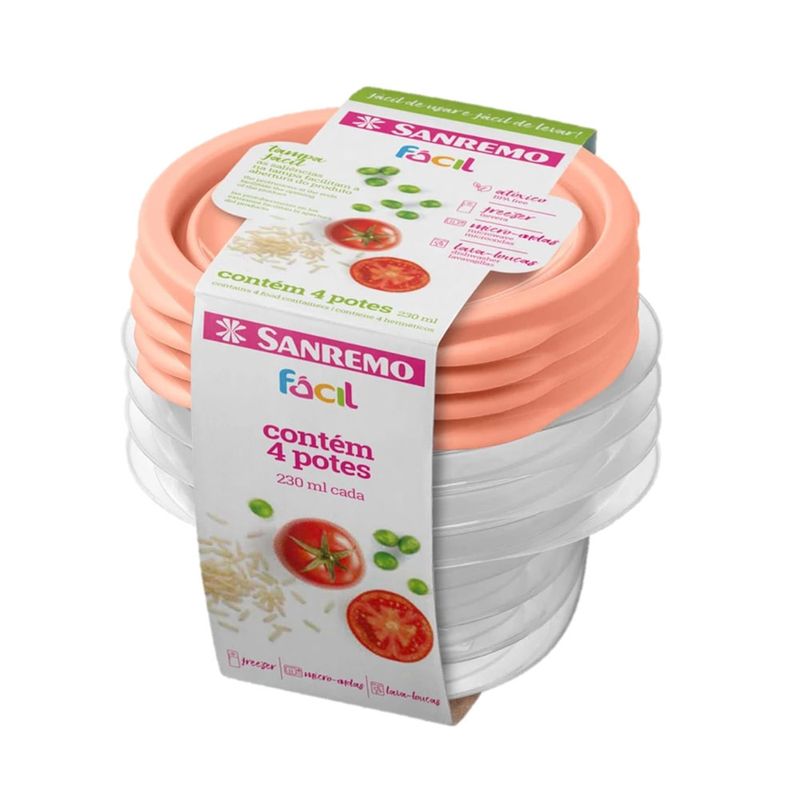 Conjuntos de Potes Plásticos 230ml 4 Peças Sortido Sanremo