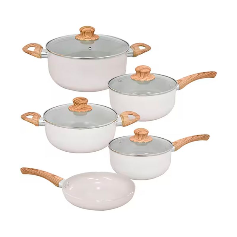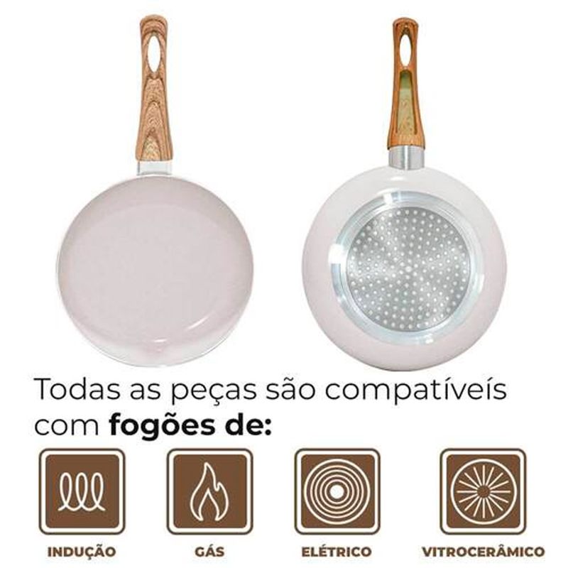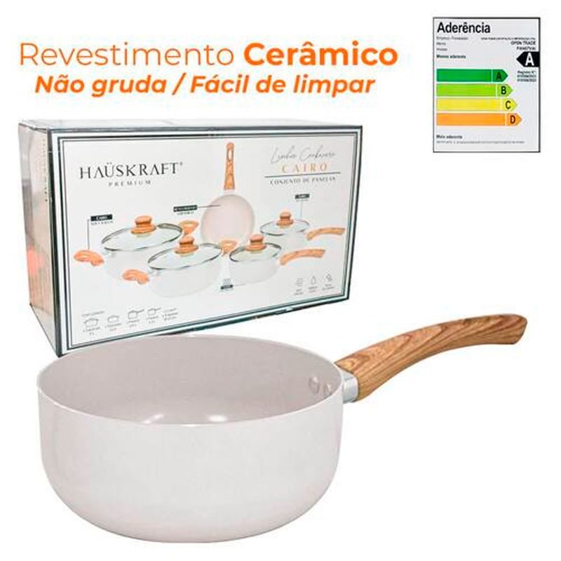 Jogo de Panelas de Indução Antiaderente Cerâmica Bege Cairo 5 peças Hauskraft