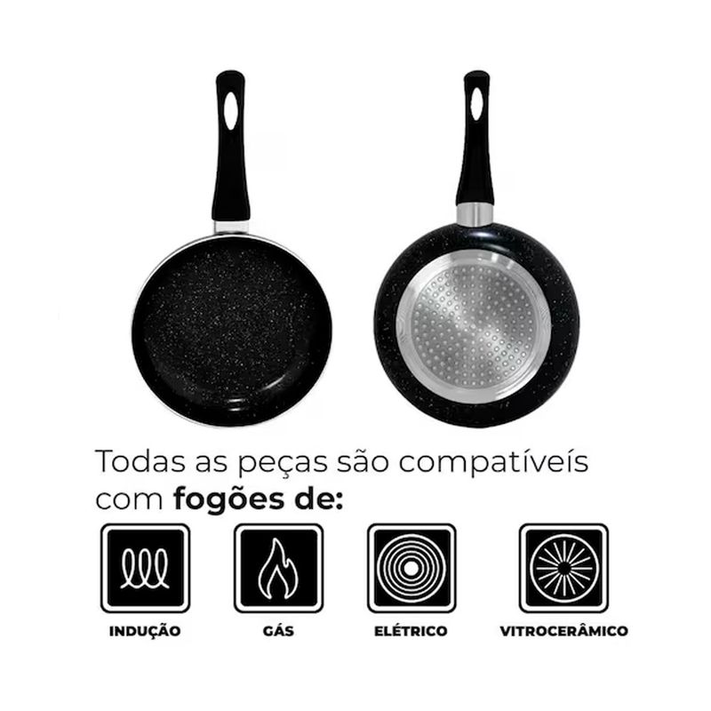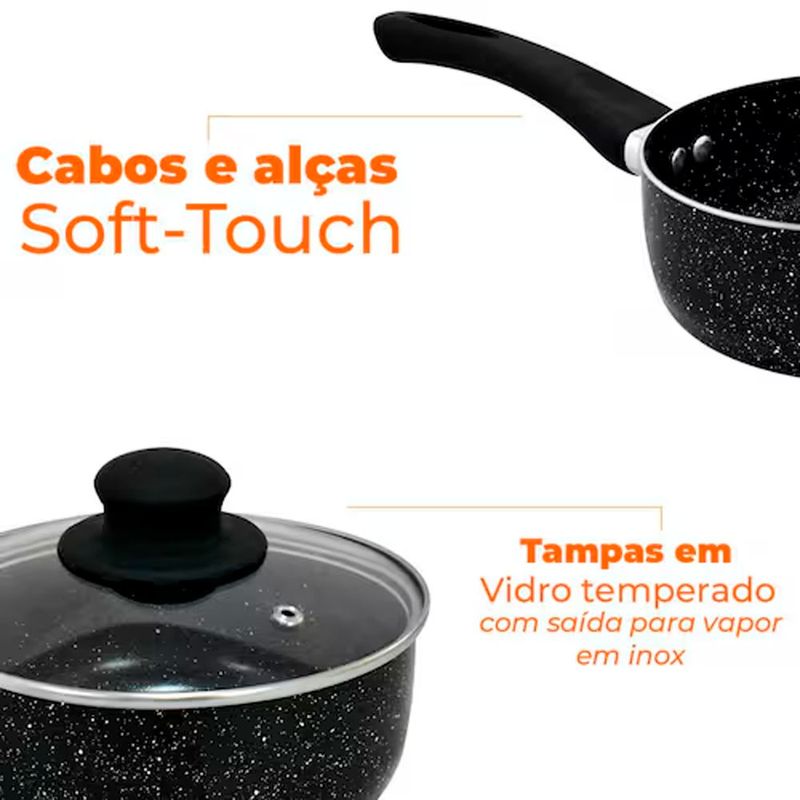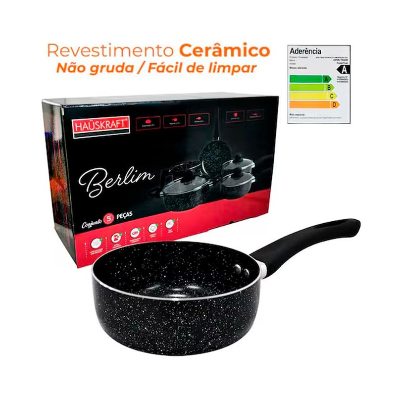 Jogo de Panelas de Indução Antiaderente Cerâmica Berlim Preta 5 peças Hauskraft