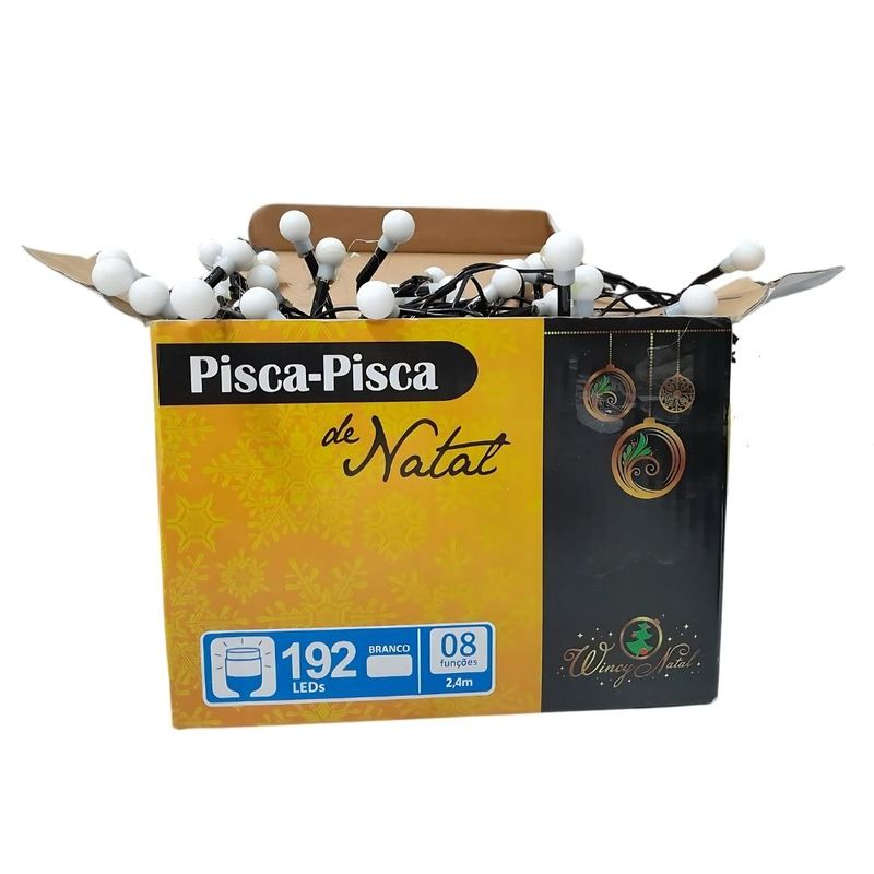 Pisca-Pisca De Natal 192 Leds Brancos 8 Funções Rio De Ouro