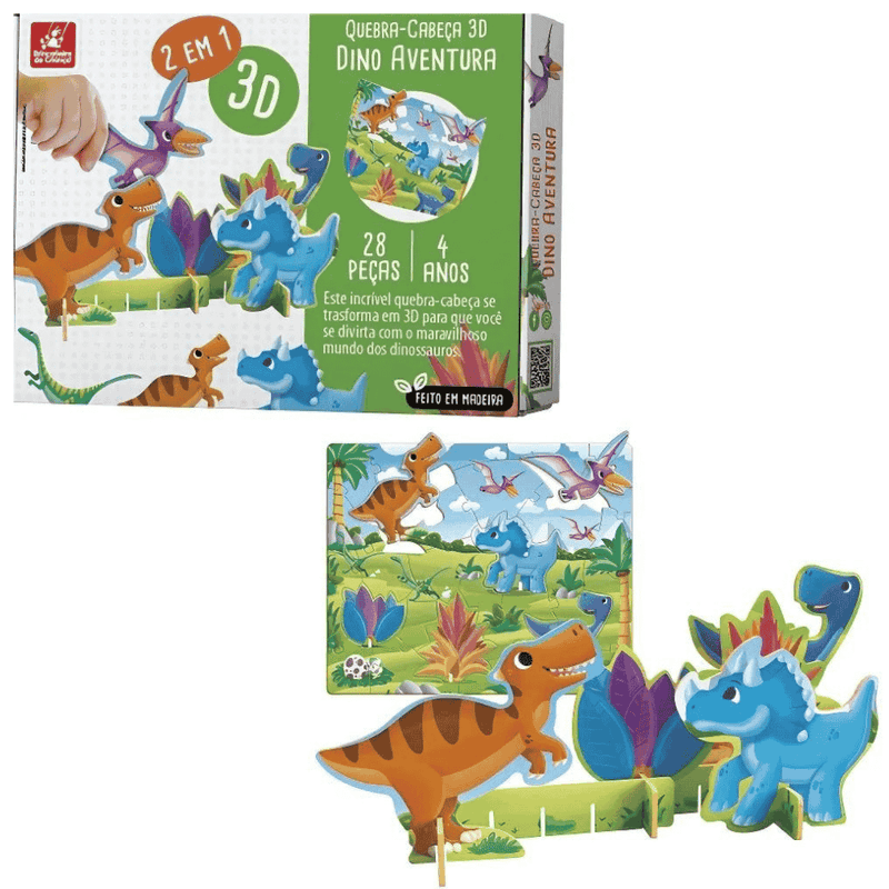 Quebra-Cabeça 3D Dino Aventura Brincadeira de Criança